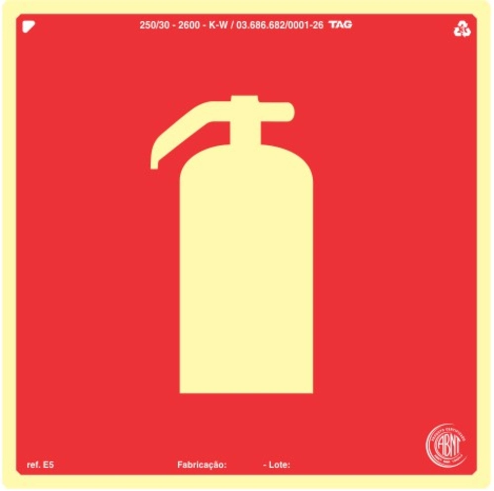 PLACA SINALIZAÇÃO FOTOLUMIN. DE EXTINTOR - 20X20CM PVC EXP. 2MM TAG