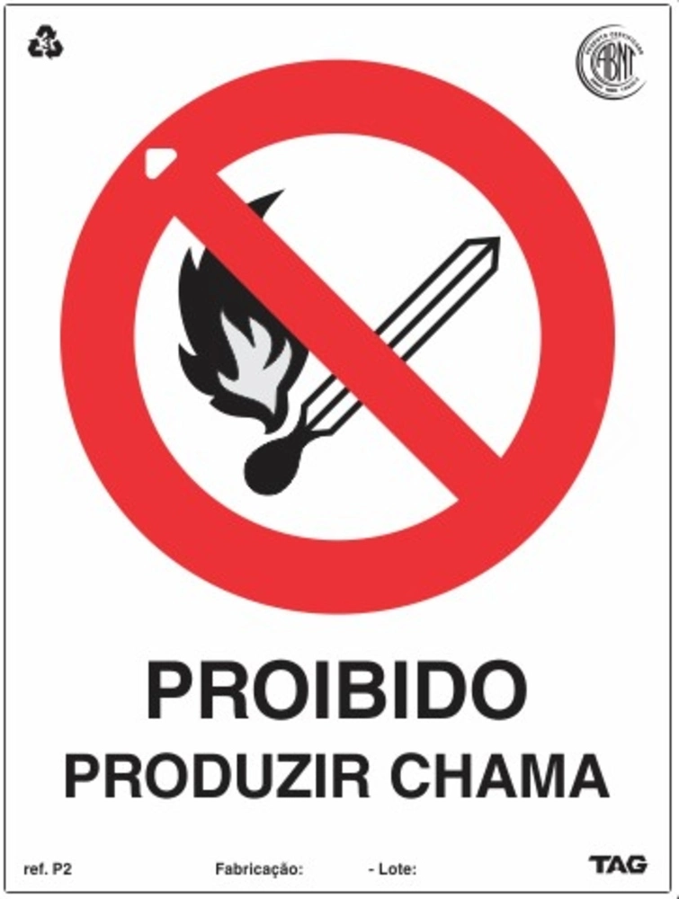 PLACA SINALIZAÇÃO FOTOLUMIN. PROIBIDO PRODUZIR CHAMA - 15X20CM PVC EXP. 2MM TAG