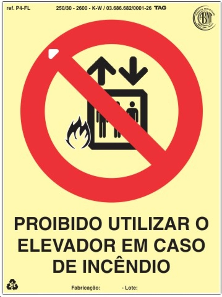PLACA SINALIZAÇÃO FOTOLUMIN. PROIBIDO UTILIZAR ELEVADOR - 15X20CM PVC EXP. 2MM TAG