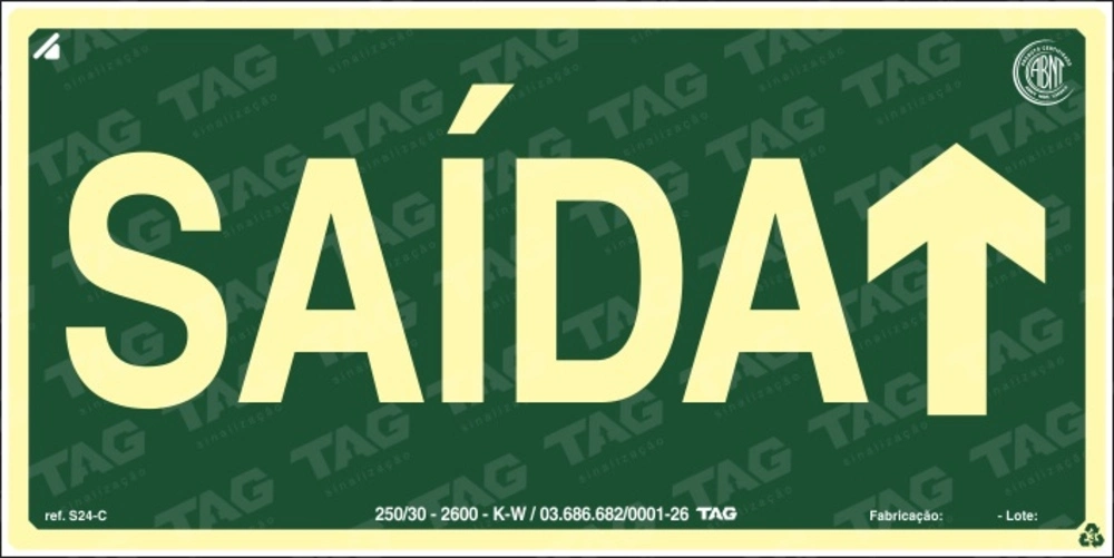 PLACA SINALIZAÇÃO FOTOLUMIN. DE SAIDA DE EMERGENCIA - 12X24CM PVC EXP. 2MM TAG