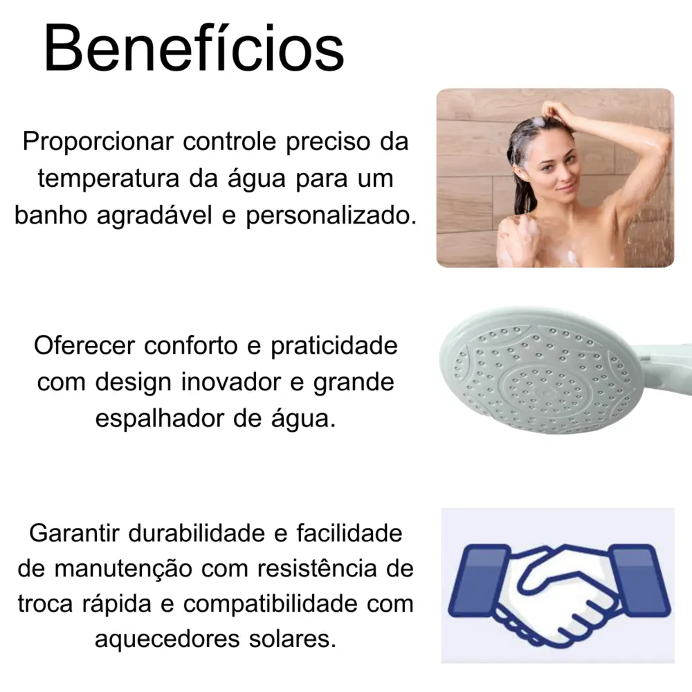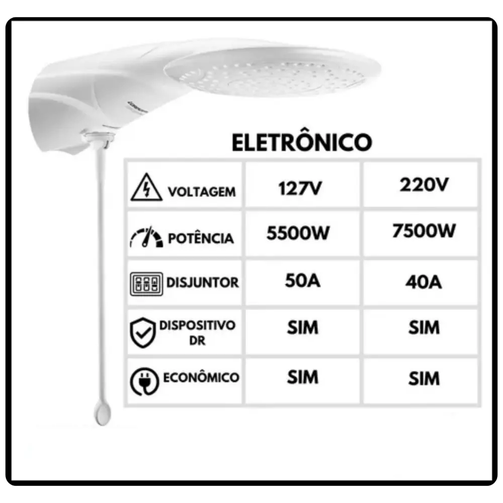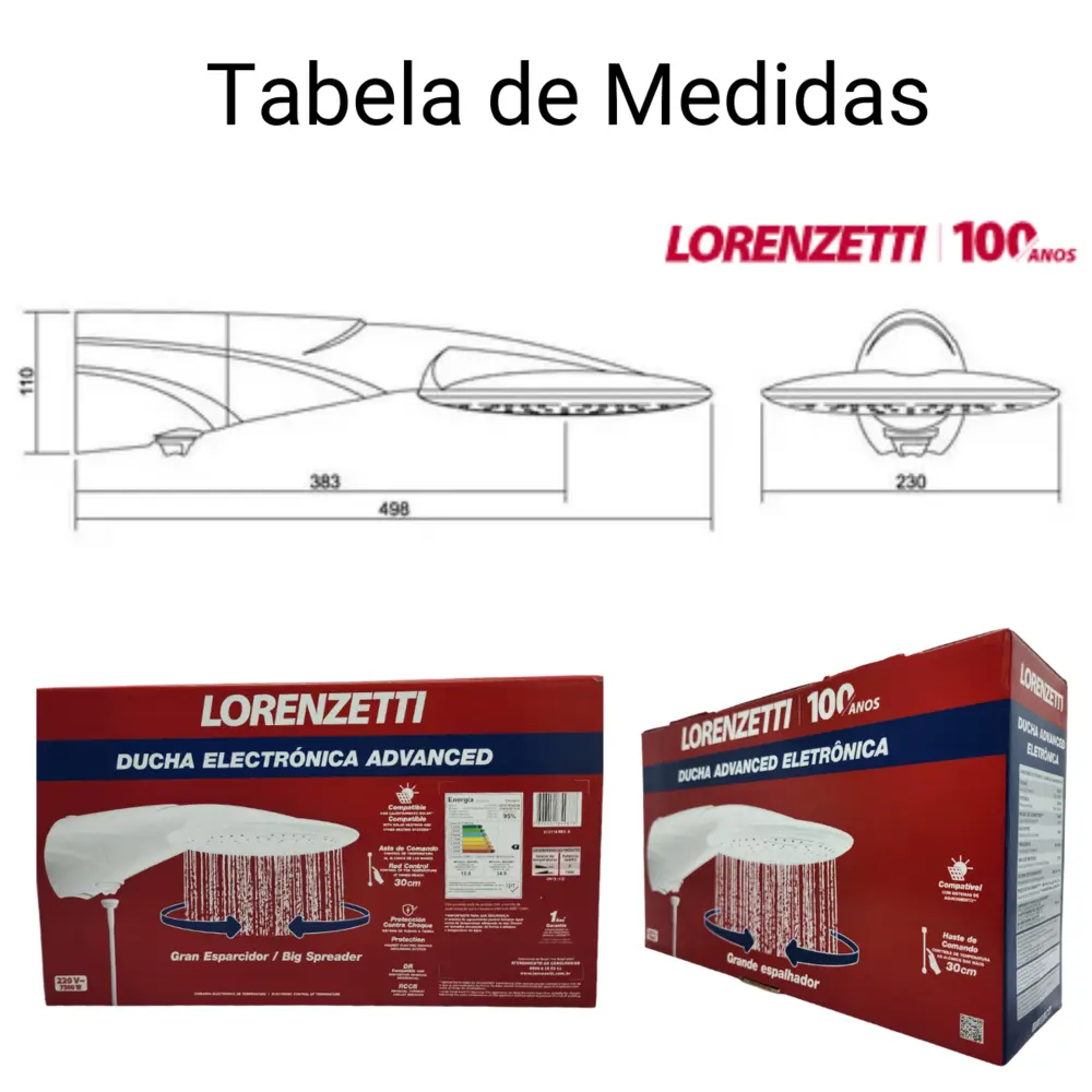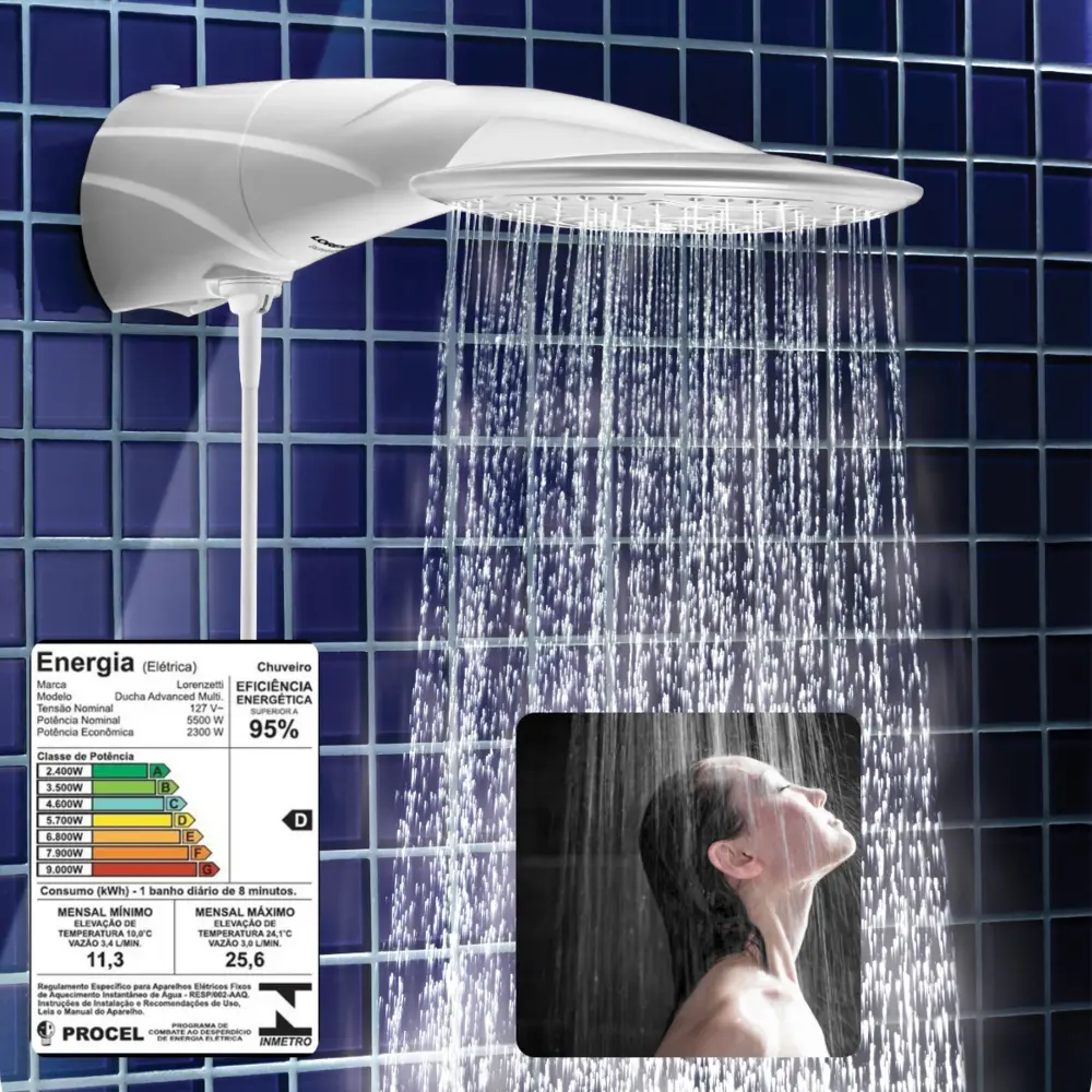Com sua tecnologia avançada, a Ducha Eletrônica Advanced oferece o controle total sobre a temperatura da água, garantindo que você possa ajustá-la precisamente de acordo com suas preferências. Seu design inovador e elegante complementa perfeitamente qualquer estilo de banheiro, enquanto seu grande espalhador proporciona um volume generoso de água para um banho revigorante.