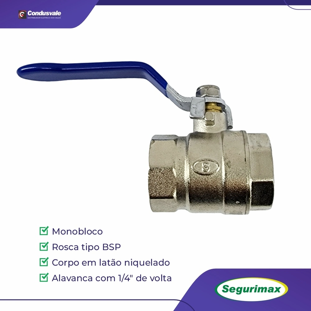 O Registro Esfera (Válvula Esfera) - Passagem Plena da Segurimax é inserido em tubulações para parar ou regular o fluxo de um líquido.