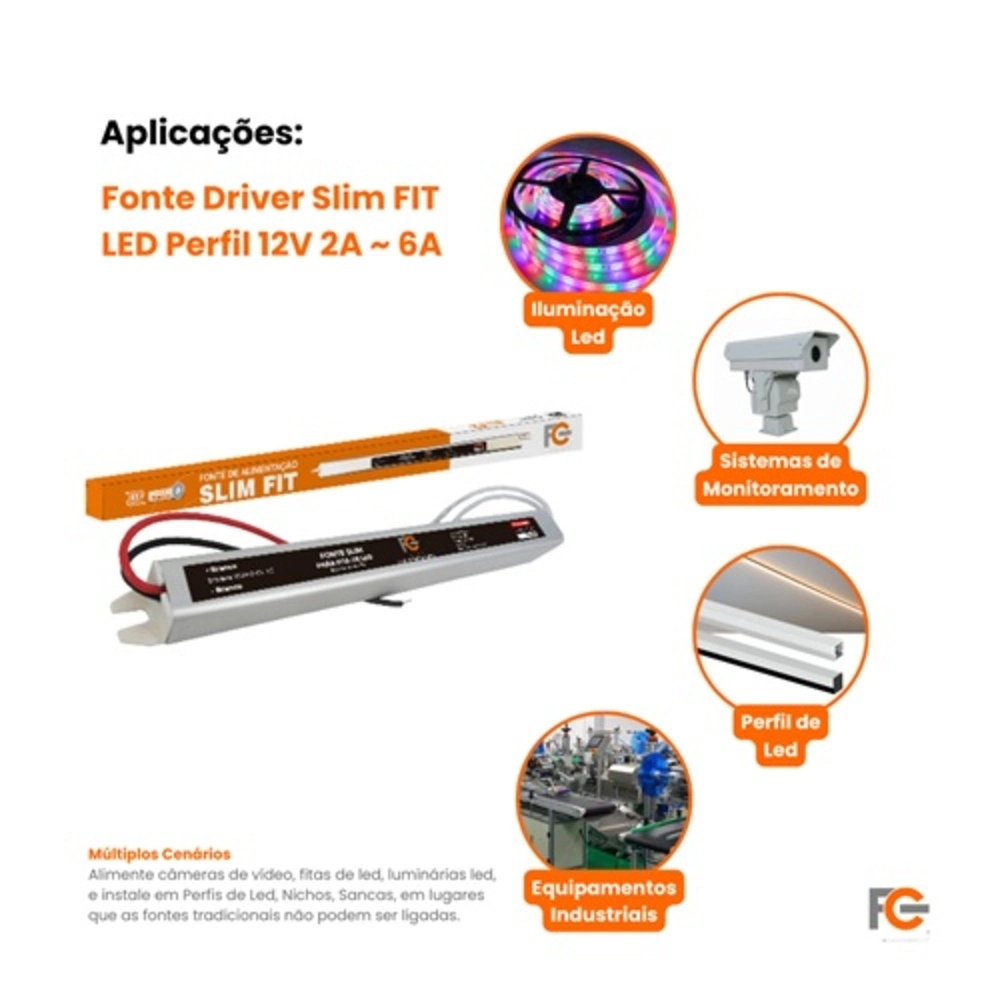 A Fonte Driver Slim FIT LED Perfil 12V 3A - 36W da FC é fabricada em alumínio, baixo consumo de energia, alta luminosidade, alta performance, ideal para uso projetos de iluminação Led. Perfeitas para serem instaladas em locais estreitos como Perfis de Led, Nichos, Sancas ou em lugares que as fontes tradicionais não podem ser ligadas.