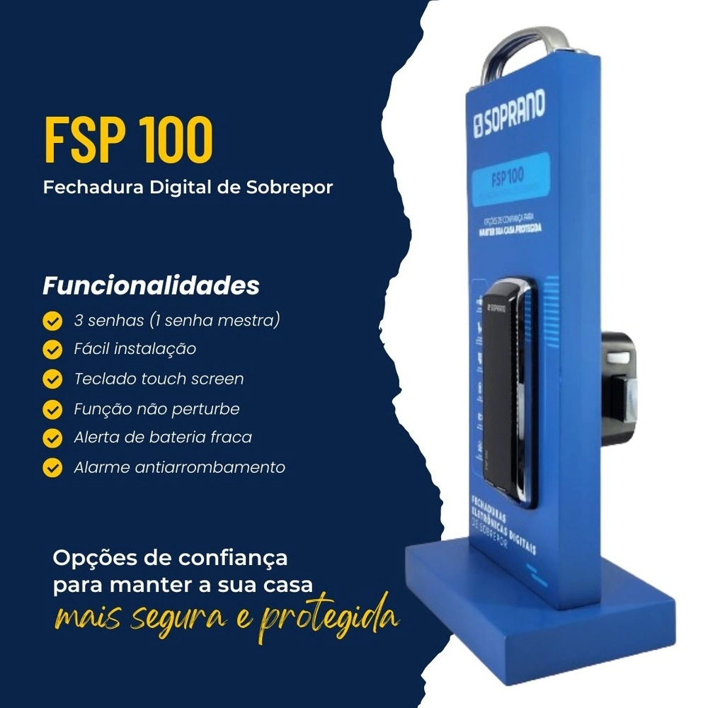 Proteja seu lar com a Fechadura Digital Sobrepor EXT PRE Senha FSP100, que combina segurança robusta e conveniência. Equipada com alarme antiarrombamento, detecta tentativas de invasão, proporcionando tranquilidade para você e sua família. A função "não perturbe" garante momentos de paz e privacidade ao ser ativada.
